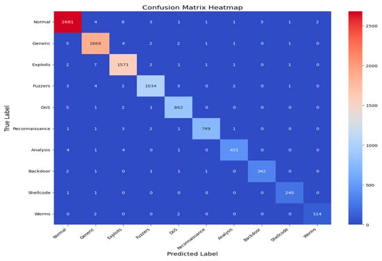 Likewise, Cui et al. [24] described using deep residual networks combined with an attention layer for intrusion detection in IoT networks. To verify this model, the study assessed it on the UNSW NB15 dataset, yielding an accuracy rate of 89.23%. Nevertheless, it could not select unpleasing characteristics, and the generalization of the out-of-sight attack patterns was constrained.