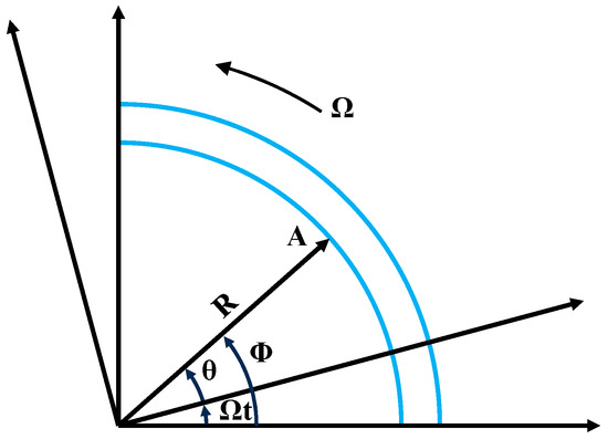 is the coordinate of the point on the ring after deformation. and represent the radial and tangential unit components in the undeformed state, respectively. The time variation is related to the angle. Therefore, when calculating the velocity vector of this point, the derivative formula of multiplication should be used. Thus, it is obtained: