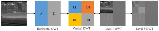 For a two-dimensional (2D) infrared image , the 2D Mallat algorithm is required, which applies high-pass and low-pass filters along both rows and columns. The transformation is defined as follows: