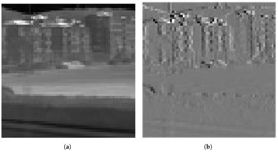 where represents the sign function; denotes rounding; is the wavelet coefficient; is the dequantized wavelet coefficient; is the quantized coefficient; and is the quantization step size, related to the dynamic range of subband j, and refers to the quantization table used in JPEG2000 [,]. In this paper, .
