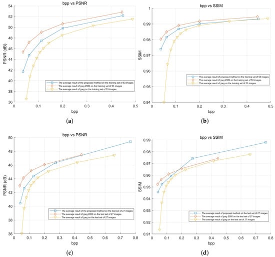 In practical image lossy compression systems, the framework based on transform–quantization–entropy coding is the most widely used [,,,,,]. However, methods that currently outperform JPEG2000 in compression efficiency typically come at the cost of increased computational complexity. The core of transform coding lies in the elimination of redundant correlations in image data, thus enhancing compression efficiency. Transformation methods in image compression can be divided into linear and non-linear transformations, with the latter commonly employed in deep learning-based image compression methods [,,,,]. The activation functions in the network architecture introduce non-linearity, thereby implementing non-linear transformations that extract complex features to achieve higher compression performance. However, deep learning-based image compression methods have higher computational complexity, which limits their application in scenarios where speed is a critical factor. Common linear transform methods include the Karhunen–Loève transform (KLT) [], Discrete Cosine Transform (DCT) [,], and Discrete Wavelet Transform (DWT) [,,,], with DCT and DWT serving as core transform techniques in the JPEG and JPEG2000 standards, respectively.