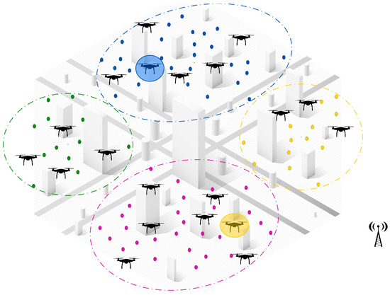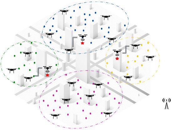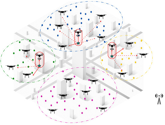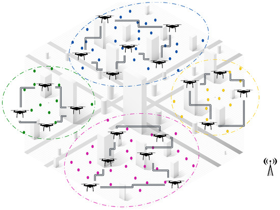 Figure 8. Communication within the clusters is limited to a specific sub-team of UAVs, activated only when dynamic events are detected and the partial reassignment process is initiated.