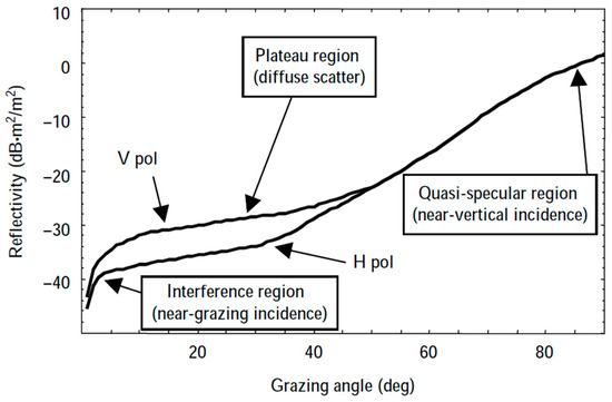 The relationship between the backscatter coefficient and the grazing angle interval is delineated in Table 3 [14,15].