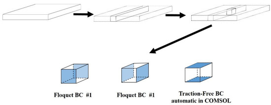 Schematic of the unit cell model implemented in the Floquet boundary condition (Floquet BC) method.