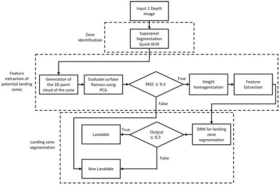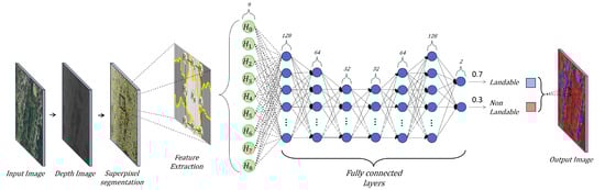 Three-Dimensional Landing Zone Segmentation in Urbanized Aerial Images from Depth Information Using a Deep Neural Network–Superpixel Approach