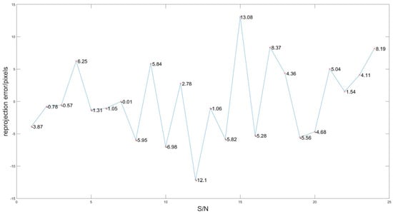 The average reprojection error is 2.7837 pixels. The laser point reprojection effect is shown in Figure 15.