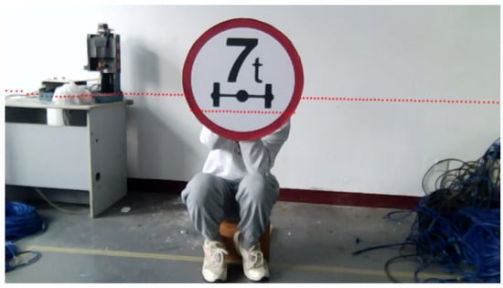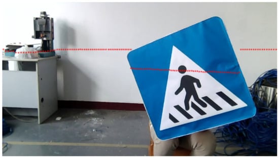 According to Section 3, we need to obtain the geometric parameters of the edge lines of the targets on the image in the pixel coordinate system. Because the edge extraction by the Sobel operator only gets the sparse pixels distributed on the edge, it still needs to further filter the pixels and fit the line. Hough transform is one of the most suitable methods for line detection in images. If there are multiple pixels in the image, the curve transformed into Hough space intersects at one point, which means that the multiple pixels satisfy a line equation. Through this principle, the line feature in the image can be searched, and the line equation in the pixel coordinate system can be given. At the same time, Hough transform transforms the line equation into the form of polar coordinates . If a point on the image falls on the line, it must satisfy: . Multiple lines may be extracted from the actual image, but only the vertical line edge is needed in the calibration process of this paper, so the distance threshold can be set in multiple candidate lines and the required target line equation can be manually selected by clicking.