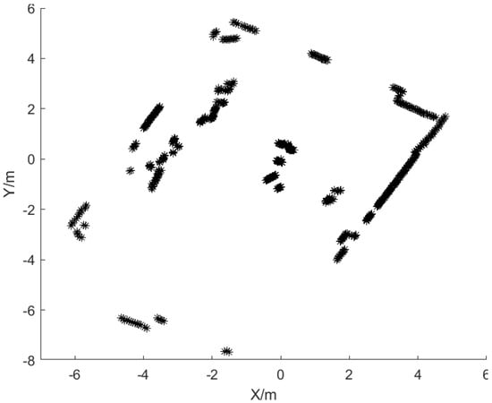 The laser point cloud of this experiment. The black asterisk represents the point cloud map generated by the LiDAR as it interacts with environmental targets.