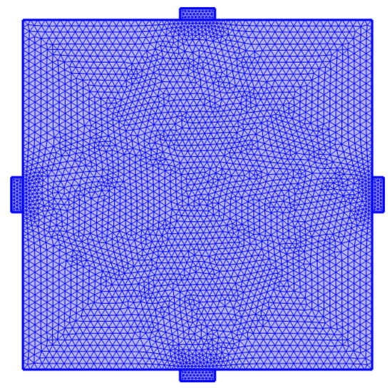 If the mesh is too fine, the calculation time will be significantly extended. Conversely, if the mesh is too coarse, the accuracy of the simulation results will be affected. In this simulation, an extremely fine mesh size was used, with the maximum element size set to 3.2 mm and the minimum element size set to 0.0064 mm. The mesh shape chosen was free triangular elements. The mesh division results are shown in Figure 12.