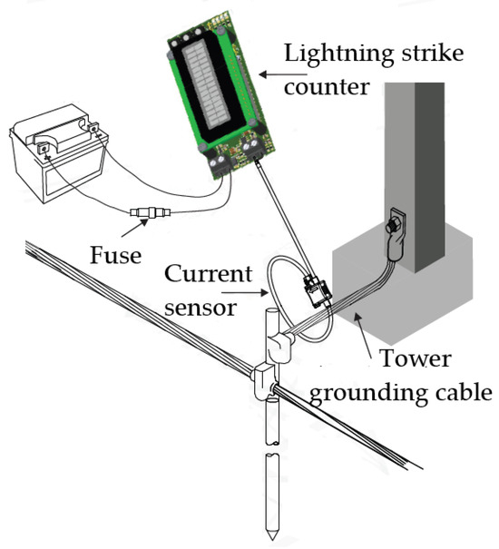 - Takami, J.; Okabe, S. Observational Results of Lightning Current on Transmission Towers. IEEE Trans. Power Deliv. 2007, 22, 547–556. [Google Scholar] [CrossRef]