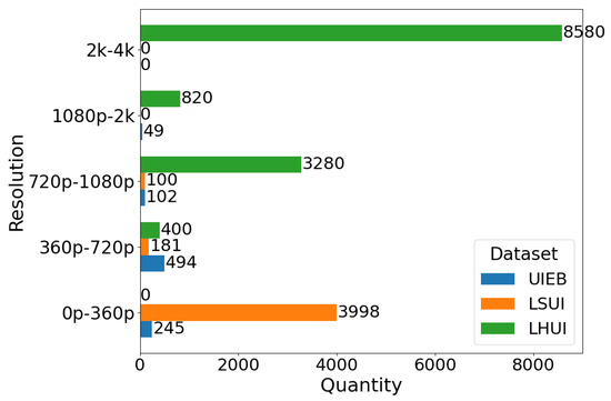 Comparison of quantity and resolution information among LHUI, UIEB [23], and LSUI [24].