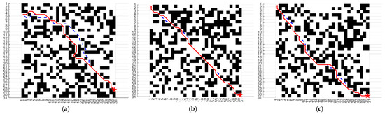 Three different 31 × 31 grid maps were generated, and path planning was performed on each map using both the traditional A* algorithm (indicated by dashed lines) and the A* algorithm enhanced with a modified heuristic function (indicated by solid lines), as illustrated in Figure 1.