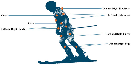 Alpine skiing is a highly dynamic winter sport that requires skiers to have precise coordination of the lower body, core, and upper body to maintain balance and control speed while performing skiing turns safely and smoothly [1]. A motion capture system to monitor skiers’ behavior while executing turns will be advantageous in providing evidence-based feedback on their performance, especially when capable of long-term monitoring. Long-term monitoring might be particularly beneficial to gain a deeper understanding of performance slumps [2] and injury mechanisms [3] as it provides information in a prolonged period and potentially addresses the data scarcity [4]. In recent years, alpine skiing motion tracking and analysis using wearable [5,6] and visual [7,8] sensors has significantly progressed. Perhaps the inertial measurement unit (IMU) is the most preferred wearable sensor in many sports motion analyses, particularly individual sports including alpine skiing [9], since it is easy to attach and does not suffer from environmental issues such as occlusion. In the alpine skiing context, scholars have employed IMU sensors to detect turns [10], recognize skiers’ activities [11], and evaluate their performance [12,13,14,15].