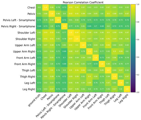 Moreover, we computed the correlation between the detected side motion and the captured turning behavior on the ground truth sensor using Pearson product-moment correlation coefficients. The correlation analysis result demonstrates a high agreement of side motions extracted from each sensor after the transformation to the ground truth and among all the sensors, Figure 6.