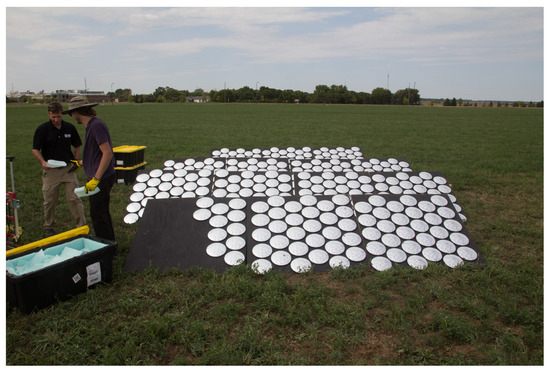 Two separate iterations of SPARC were used during BigMAC. A number of manually placed target arrays made of multiple mirrors were placed at the primary experiment site; Figure 6. These “manual” arrays were individually pointed by hand based on a set observation geometry determined by the solar azimuth angle at the measurement time and the predicted view angle of the sensor under test. Secondly, an automated version of SPARC was utilized. The FLARE represents a commercial, on-demand calibration network [26]. A network node was located in Arlington, SD, 30.8 km WNW from the BigMAC experiment site. This node is designed for GSD up to 60 m, and it was tasked with providing calibration against Planetscope and the assets available during the experiment.