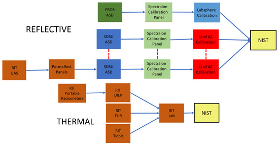 A key attribute of land surface reflectance and temperature measurements is precision or repeatability. It is imperative to know that the same measurement is being made across instruments, operators, and time. The degree to which ASD- and UAS-based measurements are repeatable is the focus on this section.