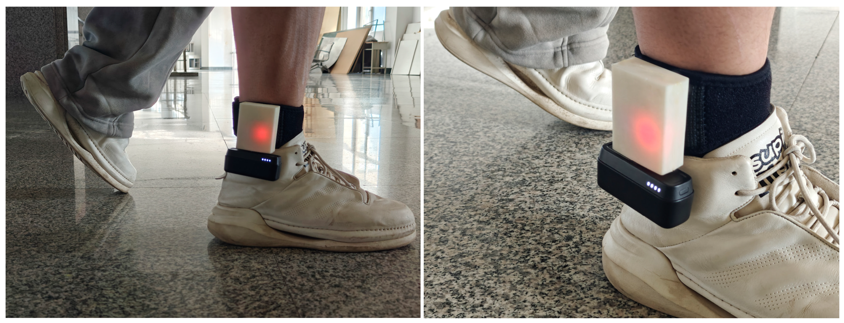 The IMU was placed on the foot of the pedestrian. The installation method is shown in