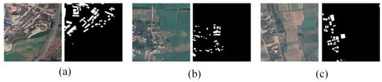 Sample images from the Rural dataset: (a–c) Original images (left) and corresponding labels (right).