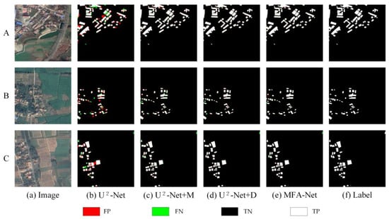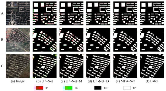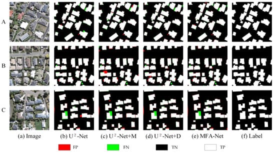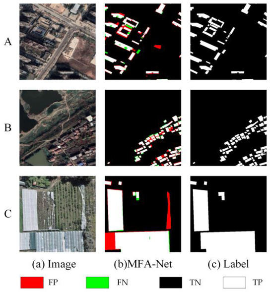 Integrating the MFA module and the novel loss function allows MFA-Net to significantly reduce false positives and false negatives, improving both edge detection and overall segmentation accuracy. The MFA module helps the model focus on critical regions, enhancing its ability to detect small, densely packed buildings, even in complex urban and rural environments. The synergistic effect of these components not only improves performance but also leads to more efficient training.