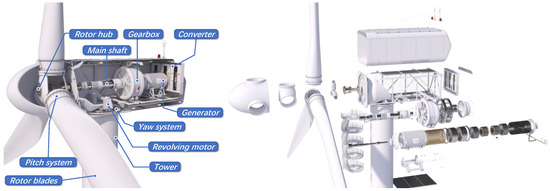 Figure 2, a WT is a sophisticated electromechanical system comprising multiple components and subsystems, including the rotor hub, blades, shaft, gearbox, and generator, among others. WT systems are highly complex and comprised of numerous components that operate at high power. As a result, they are prone to frequent failures that can cause long periods of downtime that last several days and result in significant financial losses. Therefore, effective fault detection is critical in maximizing the production capacity of WTs [