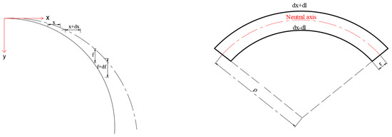 r represents the distance from the neutral axis to the boundary and ρ denotes the radius of curvature. Similarly, for the selected region, the relationship between the curvature radius ρ(x) and the deflection f(x) can be expressed as follows: