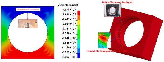 Therefore, distributed fiber optic sensors, which offer the advantages of accurate, sensitive, and easy measurement, can better meet the monitoring needs of structures in harsh environments. Accordingly, this paper employs the accurate and full-length measurement capabilities of distributed fiber optic sensors to propose a new method for monitoring the displacement of critical points through strain variations. By qualitatively analyzing the reference values through changes in optical properties, a corresponding relationship between key-point displacement and circumferential strain in the cavern model is established, providing a reference for solving the measurement challenges of displacement at certain points in cavern monitoring.