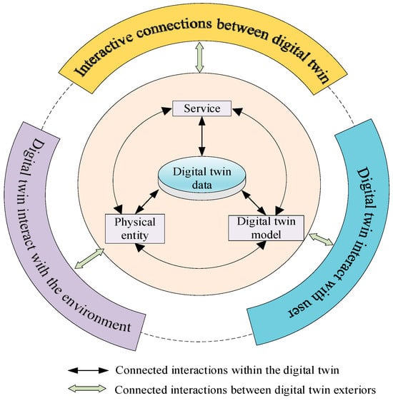 - Real-time interaction. There is a real-time two-way interaction between the digital twin and the physical entity. On the one hand, the digital twin can be dynamically updated and optimized according to the real-time data of the physical entity; on the other hand, the simulation results and prediction information of the digital twin can be fed back to the physical entity to provide a basis for its operation control and decision-making [13].