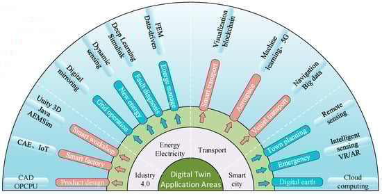Since the concept of digital twin was proposed in 2002; with the development of information technology, it has gradually moved from theory to practical application and become a hotspot of research in multiple fields. Figure 3 gives the main application areas of digital twin technology.