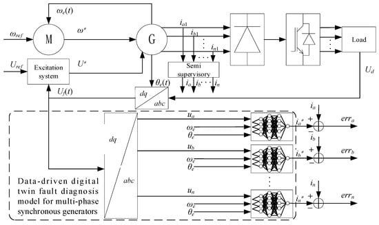 In recent years, with the rapid development of information technology, motor fault diagnosis technology is also constantly being revolutionized [4]. From the traditional method based on sensor monitoring and simple data analysis, the methods for fault diagnosis have gradually developed into intelligent diagnostic means using advanced technologies such as data mining and machine learning [5]. Among them, digital twin technology, as a cutting-edge digitalization technology, has become a research hotspot in this field by virtue of its unique features of virtual–real mapping, its data-driven nature, model fusion, real-time interaction and full lifecycle coverage, which bring brand new ideas and methods for motor fault diagnosis [6]. The purpose of this paper is to provide a systematic review of the application of digital twin technology in electric motor fault diagnosis, sort out its development status, key technologies and application examples, give a conception of multi-phase synchronous generator fault diagnosis based on digital twins, and discuss challenges and future development directions.