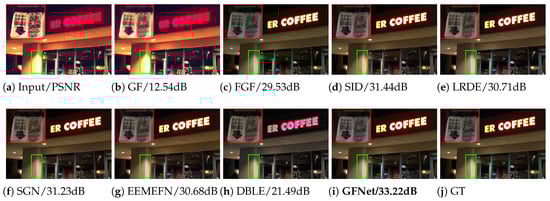 - Jin, X.; Han, L.H.; Li, Z.; Guo, C.L.; Chai, Z.; Li, C. DNF: Decouple and Feedback Network for Seeing in the Dark. In Proceedings of the 2023 IEEE/CVF Conference on Computer Vision and Pattern Recognition (CVPR), Vancouver, BC, Canada, 17–24 June 2023; pp. 18135–18144. [Google Scholar]