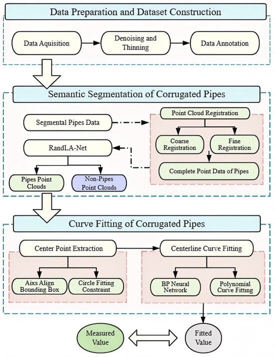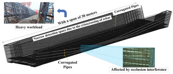 - Shu, J.; Zhang, X.; Li, W.; Zeng, Z.; Zhang, H.; Duan, Y. Point Cloud and Machine Learning-Based Automated Recognition and Measurement of Corrugated Pipes and Rebars for Large Precast Concrete Beams. Autom. Constr. 2024, 165, 105493. [Google Scholar] [CrossRef]