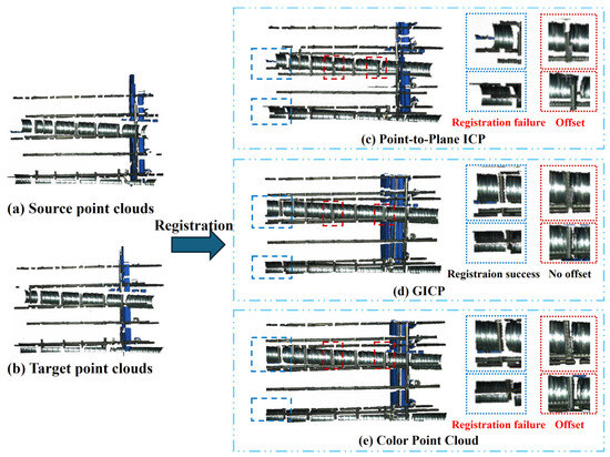 - The proposed point cloud registration method integrates both coarse and fine registration stages to achieve accurate alignment. During the coarse registration stage, the RANSAC algorithm combined with Fast Point Feature Histograms (FPFHs) was employed for initial alignment by iteratively estimating optimal feature correspondences. In the fine registration stage, three methods, Point-to-Plane ICP, Generalized ICP (GICP), and color-assisted point cloud registration, were evaluated and compared. Based on key metrics, including alignment accuracy, the RMSE of inlier pairs, and computation time, GICP was identified as the most suitable method for the fine registration of point clouds in precast segmental box girders.