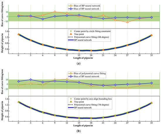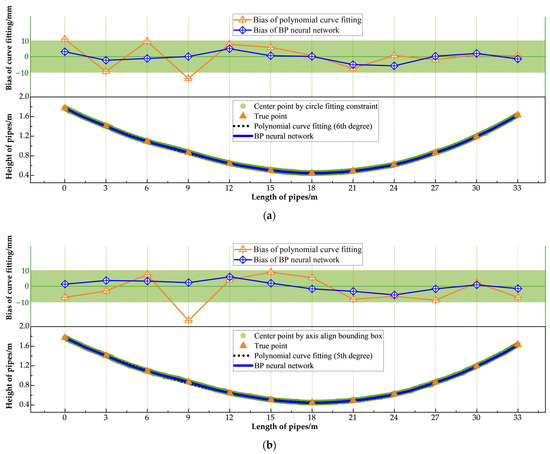 - BP neural networks and polynomial curve fitting were employed to model the centerlines of the pipes. The BP neural network demonstrated significantly greater robustness, effectively managing the irregular and dispersed center points in the data over traditional polynomial curve fitting. It consistently maintained fitting biases within the permissible error range, achieving reliable and accurate performance even under challenging conditions.