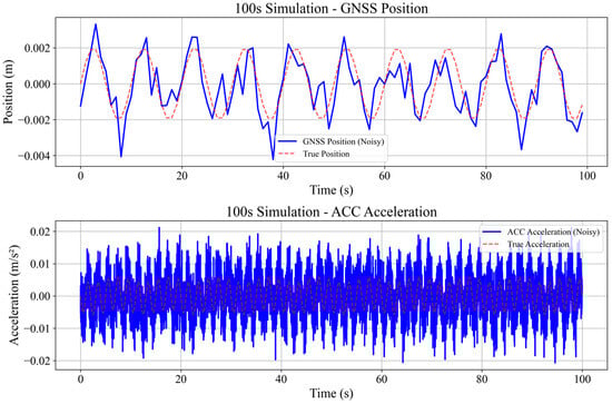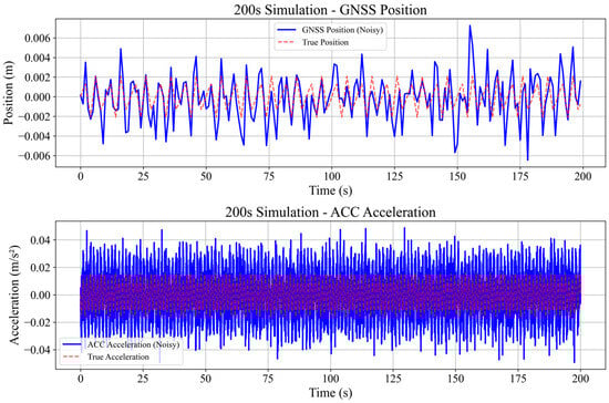 The GNSS signal is sampled at a frequency of 1 Hz, primarily capturing low-frequency quasi-static displacement components. White noise is added to simulate sensor noise, resulting in the final GNSS measurement signal: