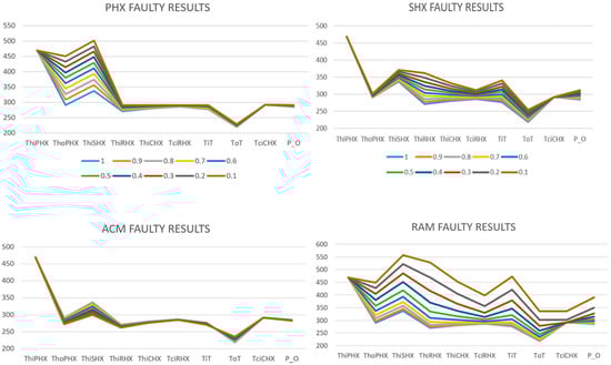 Temperature sensors’ readings across ECS components obtained from SESAC simulation for four fault modes [28].