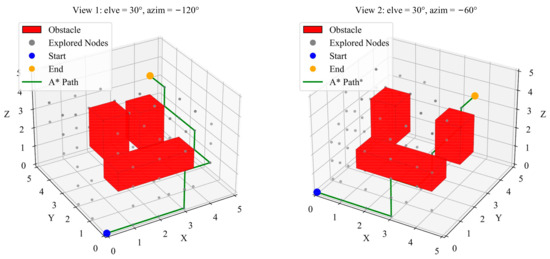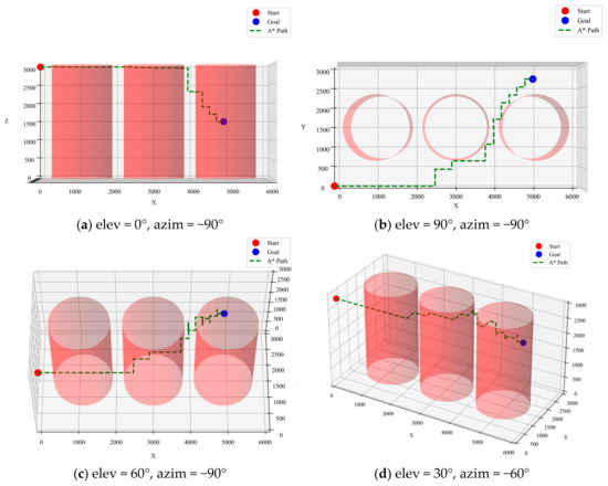 - Martins, O.O.; Adekunle, A.A.; Olaniyan, O.M.; Bolaji, B.O. An Improved multi-objective a-star algorithm for path planning in a large workspace: Design, Implementation, and Evaluation. Sci. Afr. 2022, 15, e01068. [Google Scholar] [CrossRef]