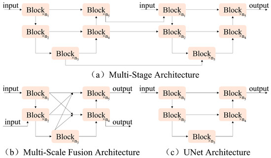 Figure 3a), and multi-scale fusion architectures enhance the fusion of features at different scales through complex inter-block connections (