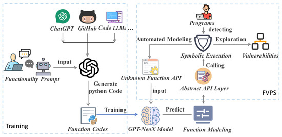 We mainly use a pre-training approach to achieve the automatic modeling of unknown functions based on LLMs. To realize the automatic modeling of unknown functions within symbolic execution, our research methods involve several key components: the training and fine-tuning of a 20B LLM, optimization of GPT-NeoX, construction of an abstract layer for WebAssembly functions, and the application to blockchain smart contracts. Among them, the symbolic execution framework, including the unknown function API, the abstract API layer, path exploration, vulnerabilities, etc., is based on our previous research work FVPS [16]. Function modeling replaces earlier manual approaches. Our processing flow is shown in Figure 1 below.