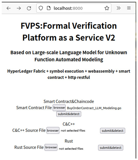 In addition to this, our formal verification platform based on our automated modeling methodology successfully generates the rest interfaces, such as logging, peer-to-peer response, stub interfaces, etc. To justify the feasibility of our approach, we prepare program source codes in various languages including C/C++, Rust, and Golang; moreover, the user submissions are temporarily stored in the upload directory via the web page illustrated in Figure 13 and Figure 14a.