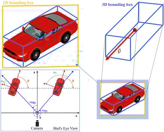 Figure 1 illustrates the integration of information from two types of object detection methods: 2D bounding boxes and 3D bounding boxes. Combining these two data types provides several key advantages for autonomous vehicles, including the following: