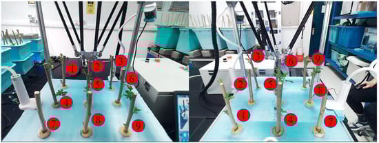 The mulberry cuttings in the collected images were labeled with serial numbers. The serial numbers of mulberry cuttings in the same position in the three images within a group needed to be consistent. A schematic diagram of the labeling system is shown in Figure 14.