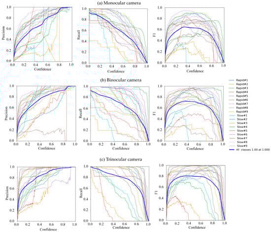 Comparative analysis of YOLOv8n model performance metrics across three distinct camera configurations: (a) monocular camera, (b) binocular camera, and (c) trinocular camera.