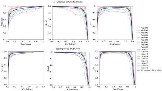 The performance was evaluated using four indicators: the precision (Pr), recall rate (Re), F1 score (F1), and mean average precision (mAP). The calculation formulas are shown in Equations (1)–(4).