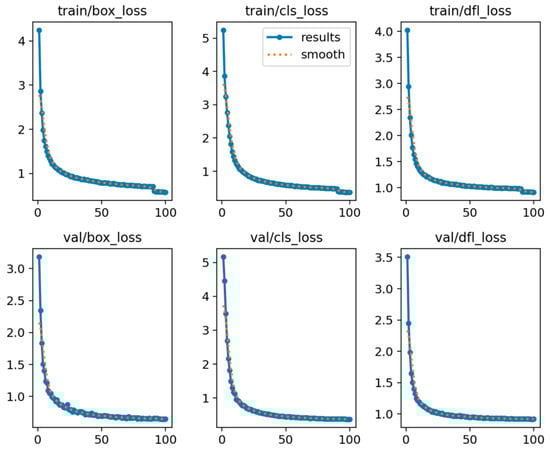 Below are the performance evaluation plots and tables showing the results obtained after training YOLOv8n, YOLOv10, Faster RCNN, and the improved YOLOv8n (YOLOv8-improve) using the mulberry cutting dataset. Figure 18 shows a performance comparison between the original YOLOv8 model and the YOLOv8-improve model. Figure 19 shows the loss profile of the YOLOv8-improve model for the training and validation sets.