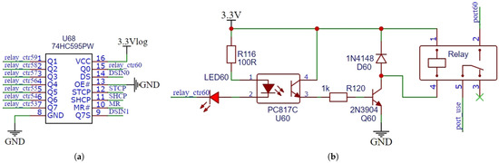 Principle diagram of the electrode switching control circuit. (a) 74HC595PW serial to parallel circuit. (b) Relay control circuit.