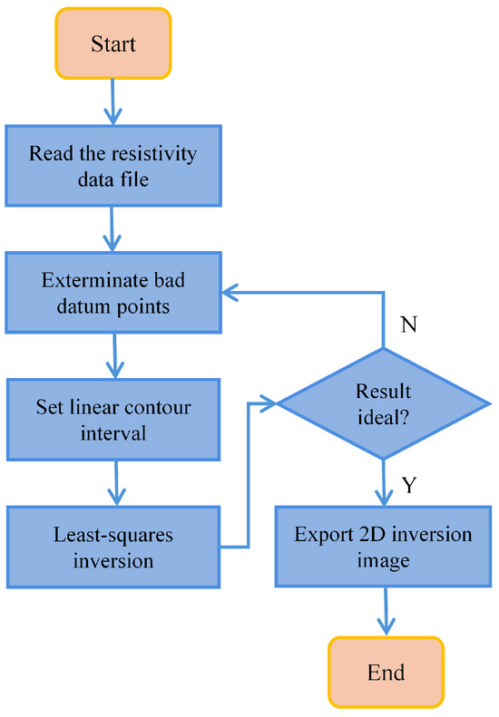 After completing data acquisition, the measurement data of each profile can be exported through the user control interface and processed individually using 2D inversion. The inversion flowchart is shown in Figure 9.