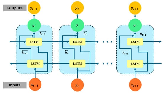 where represents the sigmoid activation function, which ensures that values are between 0 and 1, and introduces nonlinearity to help model complex sequential relationships. The element-wise multiplication allows for selective updates to the memory and hidden states, ensuring that only the most relevant information is retained. Unlike a traditional LSTM, which only processes the input sequence in one direction (from past to future), a BiLSTM extends this by introducing two LSTM networks, one moving forward and the other moving backward through time. This bidirectional structure allows the model to capture dependencies in both directions, making it particularly useful in tasks where context from both past and future time steps is essential. The forward LSTM computes