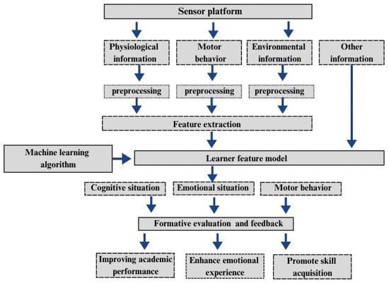 Despite these limitations, research leveraging sensor data to optimize learning environments has achieved promising results. For instance, learning environment awareness systems designed with environmental sensors can create personalized learning pathways tailored to students’ real-world scenarios. Gesture recognition and interactive reading systems have also been shown to improve children’s interest in reading, enhancing their language and comprehension skills [71,72]. However, these interventions are relatively underdeveloped, with simplistic models and insufficient personalized feedback.