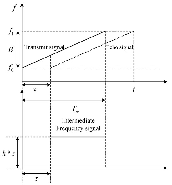 The system generates an intermediate frequency (IF) signal by mixing the transmitted and received signals. Since the time delay  is much smaller than the modulation period , the IF signal frequency  can be approximated as follows: