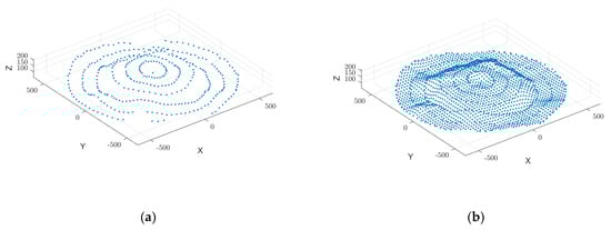 Point cloud data enhancement. (a) MLS smoothing point cloud data. (b) Strengthening point cloud data by bicubic spline interpolation.
